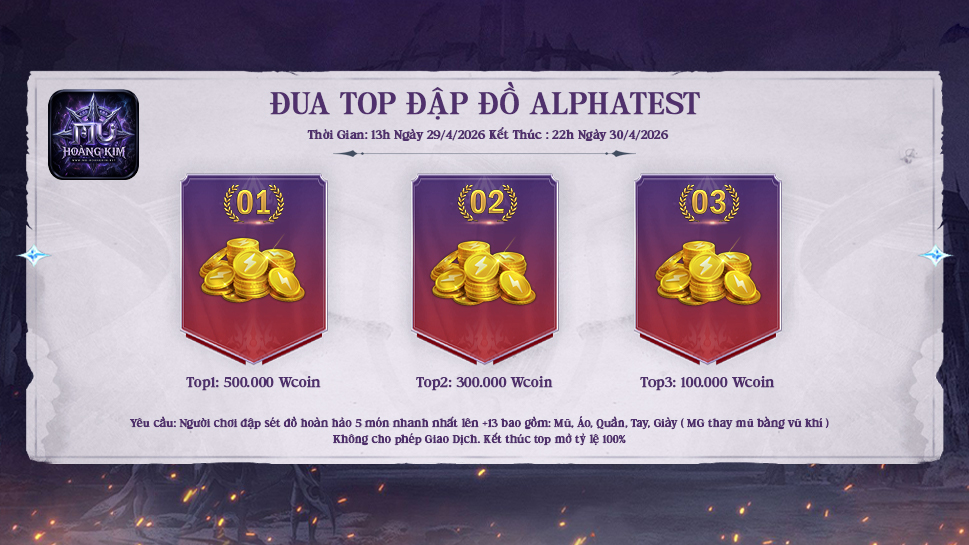 - Đua TOP AlphaTest – Thưởng nóng 5 triệu ATM